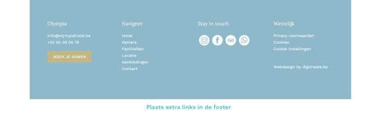 - Niet alles hoeft trouwens in je hoofdnavigatie. Weet dat er in de footer ook links kunnen ondergebracht worden. Gebruikelijk voorzien we daar een links naar privacy policy, cookie policy, partners, social media, …