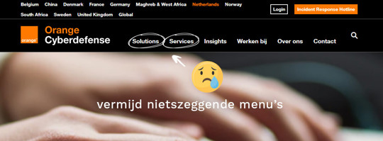 - Zorg voor beschrijvende menunamen. De verleiding is groot om je diensten onder één grote noemer ‘diensten’ te plaatsen, maar het meteen bij naam weergeven van je diensten is veel duidelijker en beter voor de zoekmachines. Hetzelfde geldt voor menunamen zoals ‘producten’ en ‘aanbod’: te vermijden.